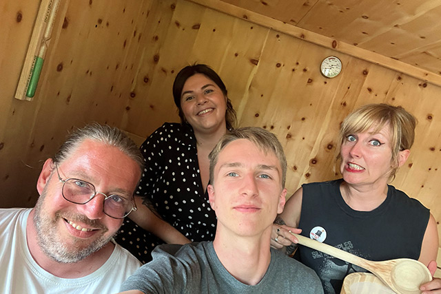 Neben einem Gemeinschaftsraum mit Holzofen verfügt das Kabaischen im Fond-de-Gras über eine komplette Küche, zwei Waschräume und 3 Schlafkojen mit Etagenbetten, für insgesamt 6 Gästen. Absolutes Highlight des „Wagon-Gîte“ ist allerdings die Sauna, in der man nach einer anstrengenden Wanderung auf dem Minett Trail exzellent entspannen kann.
