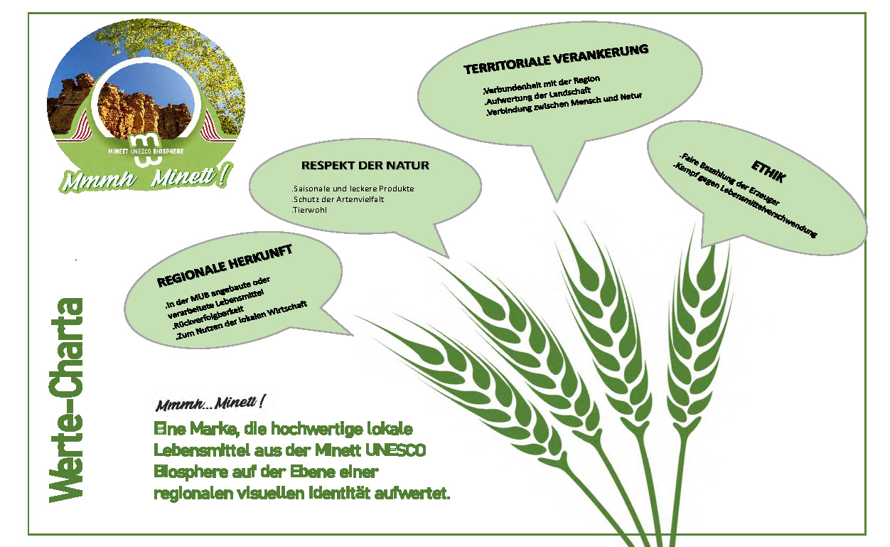 „Mmmh…Minett!“ bezieht sich auf den „lokalen Konsum“ und auf Ideen, die den Biosphärenreservaten am Herzen liegen, nämlich die Beziehung des Menschen zur Natur zu überdenken, die Bevölkerung wieder mit ihrer Heimat zu verbinden und stolz auf sie zu sein oder auch die Saisonalität zu respektieren, indem man die Lebensmittelverschwendung reduziert.