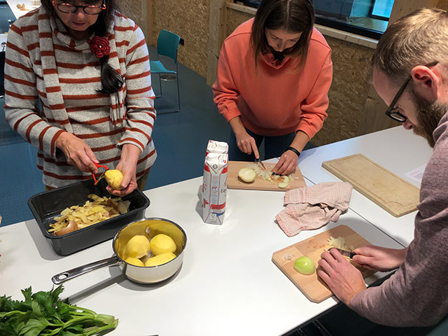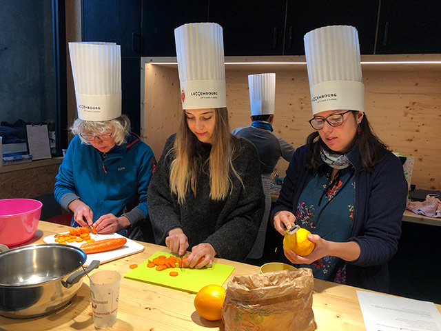 D’Rezepter si vu verschiddene Gruppe preparéiert a gekacht ginn am zum Schluss huet jiddereen déi ofwiesslungsräich Platen geschmaacht a genoss.