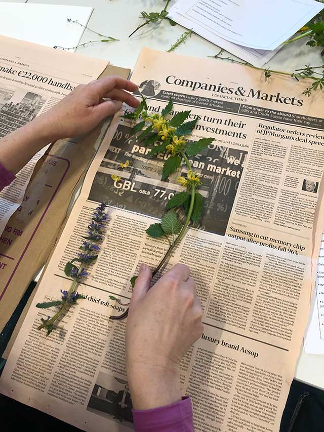 Donneschdes war den Dag fir d’Entreprisen. Zesumme mam IMS Luxembourg hate mir Mataarbechterinnen a Mataarbechter vu Betriber, déi Member bei IMS sinn, invitéiert. D’Participante kruten e Workshop proposéiert an deene si gewise kruten, wéi en Herbarium ugeluecht gëtt. D’Malika Palies vu Sound Ecology huet dëse Workshop geleet.