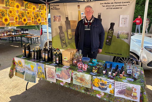 Nei war dëst Joer e lokale Maart op deem eelef Produzenten aus der Regioun hir frësch Produiten ugebueden a verkaf hunn. Hei war frëscht Uebst a Geméis genee esou an der Offer, ewéi Eeër, Ueleger oder Gedrénks.