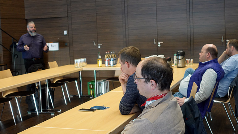 No engem Mëttegiessen an der „Brasserie D’Braustuff“ stoung den Nomëtteg am Zeeche vun zwee verschiddene Workshoppen. D’Societéit “EVERARD Consulting & Communication” huet de Produzenten Äntwerten op d’Froe ginn, firwat, wou a wéini een iwwert seng Produite soll kommunizéieren a beim Workshop vum Oekozenter Pafendall ass et drëms gaange Verkafsstänn op Green Events ze plangen an ze realiséieren.