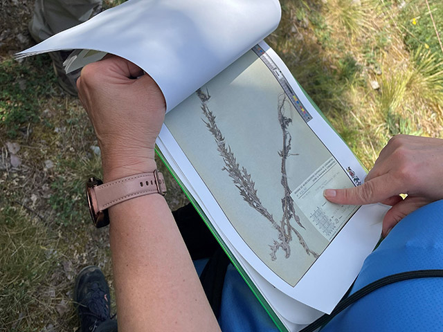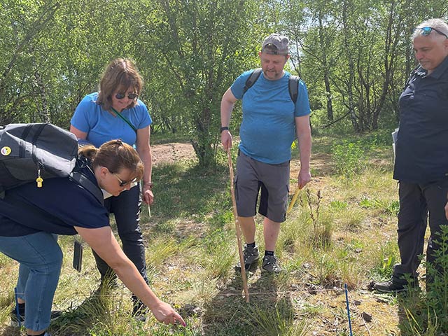 D’Participante konnten un Hand vu Bestëmmungsbicher an anerem Material selwer d’Planzen op de predefinéierte Standuerter z’identifizéieren an esou Wëssen iwwert den natierleche Räichtum vum Minett sammelen.