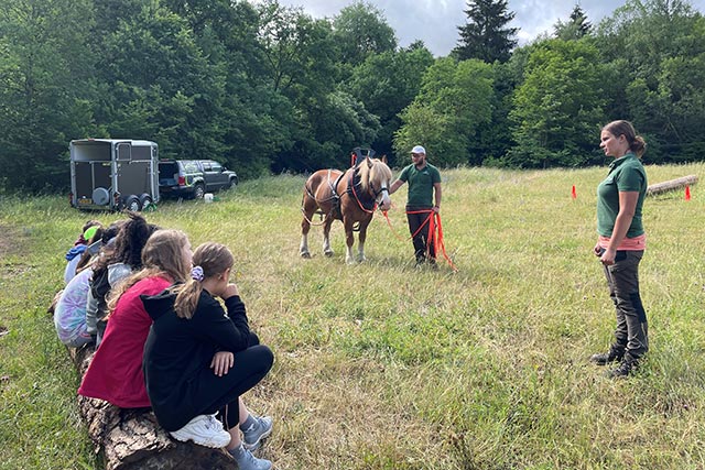 Vu Munzen aus haten och Ardenner-Päerd de Wee an de Minett fonnt. Dës kräfteg Aarbechtsdéiere goufe fréier reegelméisseg fir Bëschaarbechten agesat. Um Stand vum Touristcenter Robbesscheier konnten d’Schoulkanner erliewen, wéi dës Aarbecht fréier gemaach gouf a selwer erausfannen, wéi d’Päerd praktesch schaffen a wéi schwéier se deen Ament ze schleefen hunn.