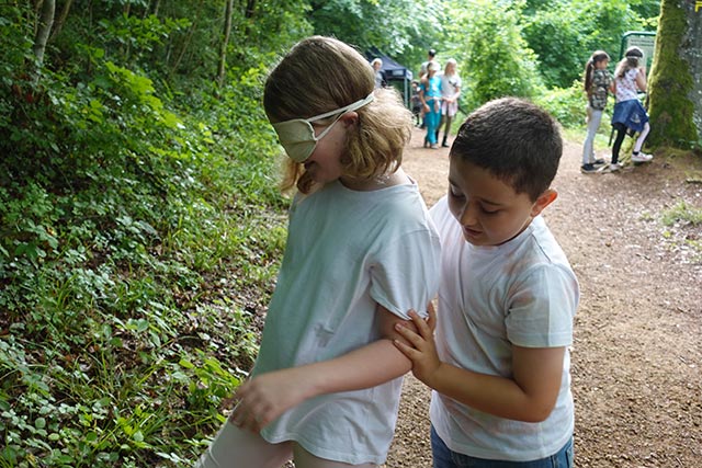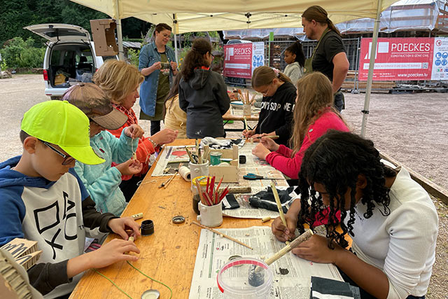 Den Atelier vun der Fondatioun natur&ëmwelt huet „Bëschbueden“ geheescht. Hei ass et drëms gaangen de Bësch mat all senge Sënner z’erliewen. Dat goung vum Héieren, iwwert d’Taaschte bis bei d’Kucken. D’Kanner kriten d’Ënnerscheeder tëscht den eenzele Bamaarten erkläert a se hu mussen erausfannen, wéi eng Saachen net an de lokale Bësch gehéieren.