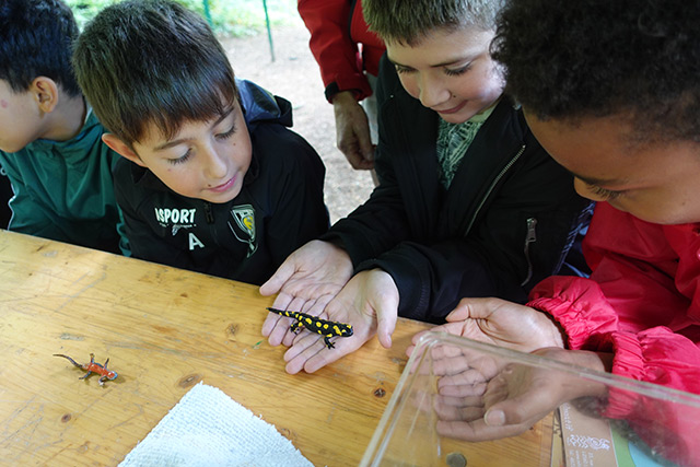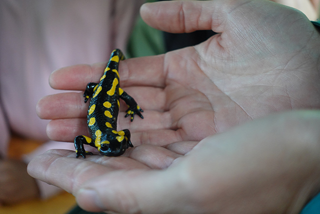 Um Stand vum Naturmusée goung et ëm d’Bewunner vun den Dëmpelen an Weieren an der Minett UNESCO Biosphere. D’Kanner kruten déi eenzel Waasserederësse vun der Minett UNESCO Biosphere gewisen an hate grouss Freed mam Feiersalamander, deen se esouguer hunn däerfen an d’Hand huelen.